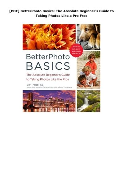 Read BetterPhoto Basics Absolute Beginners Taking PDF online is a convenient and frugal way to read BetterPhoto Basics Absolute Beginners Taking you love right from the comfort of your own home. Yes, there sites where you can get PDF "for free" but the ones listed below are clean from viruses and completely legal to use.